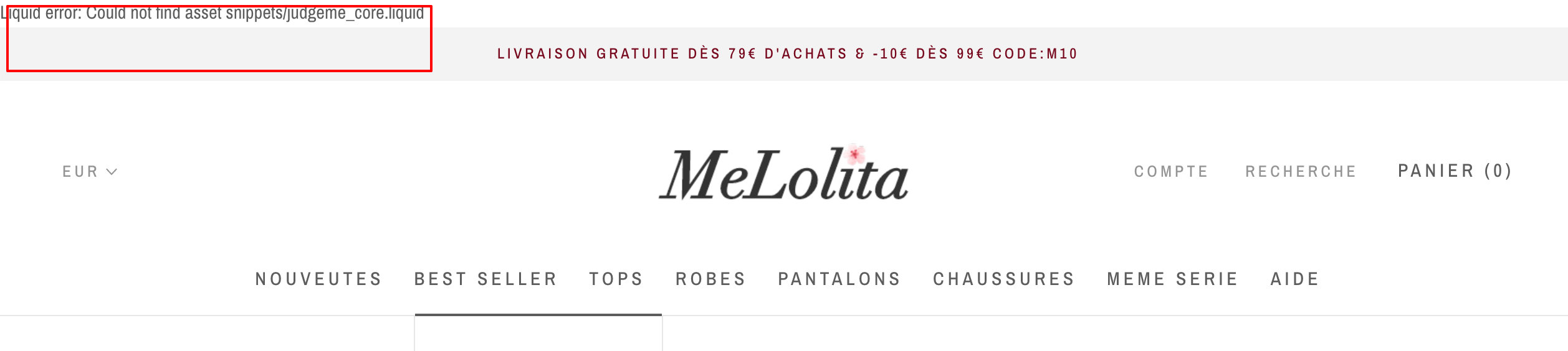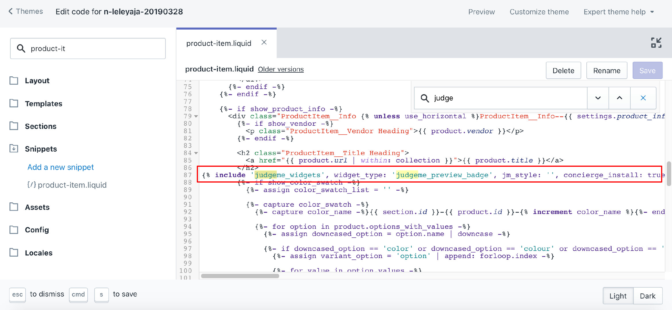 最后在theme.liquid搜索judgement,然后删除红框内的一行.至此,报错已经全部删除,